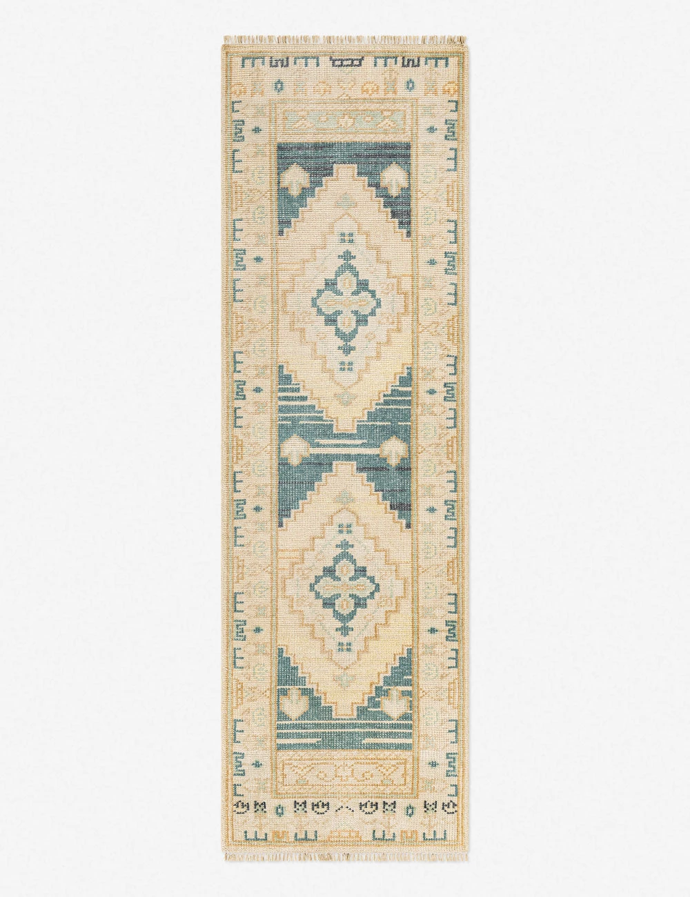 A traditional medallion design and lightly distressed coloring imbue this rug with an antique tone. The hand-knotted construction offers a lasting style perfect for your entryway or styled as an area rug in a high-traffic lounge.