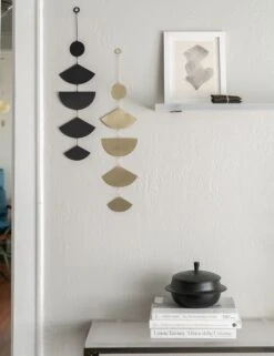 A versatile piece of wall decor, this linear wall hanging mixes simple geometric shapes for an easy-to-love look in any room. Strung on a single chain, this metal wall hanging brings a sense of playful balance to your home.