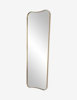 The Belvoir mirror offers sleek simplicity with its slim brass-finished frame. Its tapered shape bows at the top and bottom, styling an artful silhouette with a modern edge. This full length mirror is a practical touch with chic appeal from your closet or en suite to a guest room or lounge.