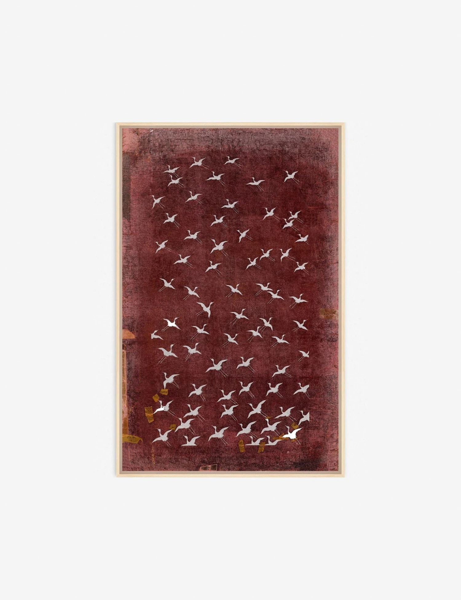 Featuring a dance of descending cranes, this wall art piece acts as the perfect complement to any moody or small space. Pair with similar pieces to hang triptych for a beautiful installation.