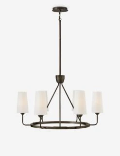 The Dabney chandelier brings stylish elegance to traditional lighting. The tapered paper shades feature fine stitching adding a delicate touch to the sleek frame. We love this transitional chandelier design to tie together a space where classic touches enrich modern decor.
