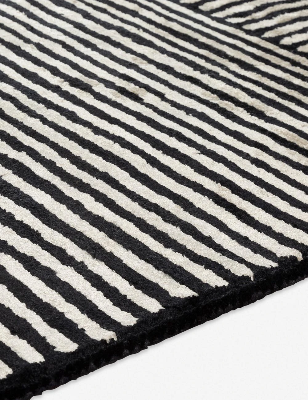 Invitingly soft with a bit of sheen, this hand-tufted viscose rug features an eye-catching geometric design. The offset stripes create statement appeal, whether styled as a living room area rug or luxe bedroom layer.