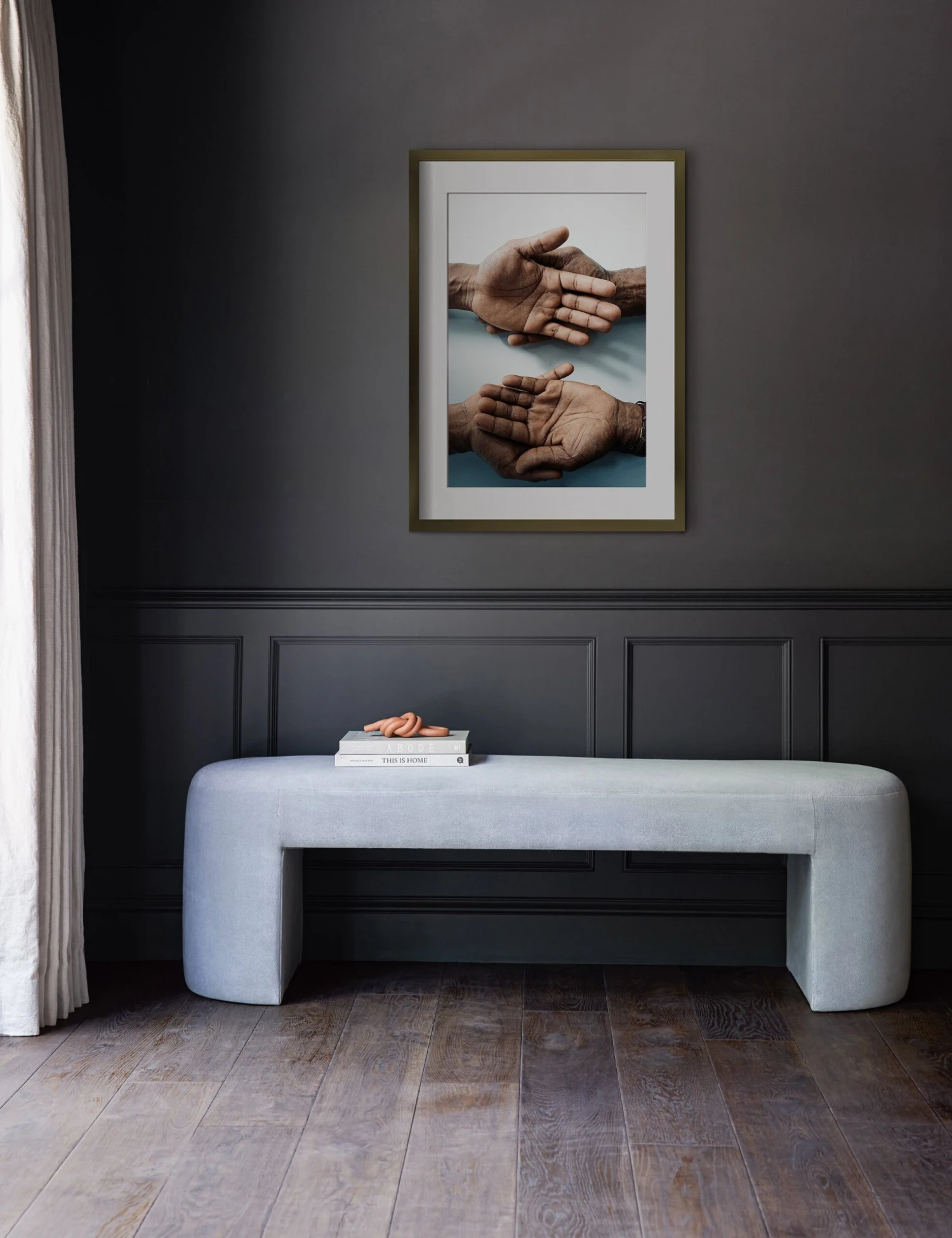Winston-Salem-based multidisciplinary artist Ashley Johnson uses mixed media to create her staged portraits. This profoundly close meditation focuses on the relationship between father and son. This wall art print was produced with the giclée printing process, using archival inks to achieve long-lasting, true-to-color richness, outstanding resolution, and an even ink lay for a stunning gallery-quality addition to your art wall decor.