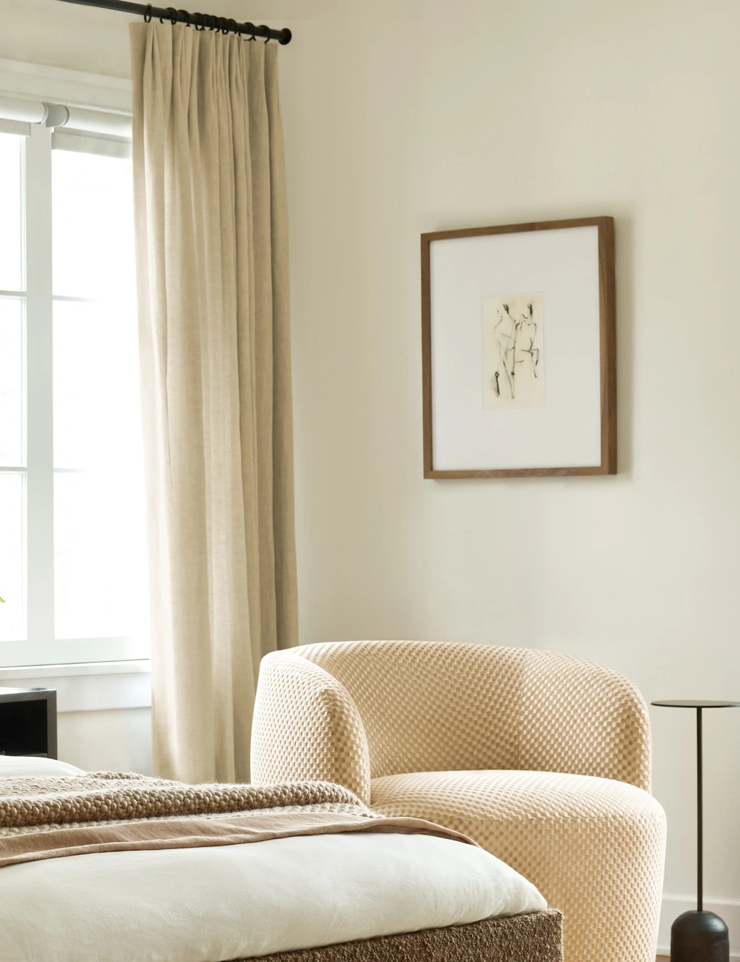 This wall art print features two abstract figures in a hand-sketched charcoal style. The light, free-flowing lines inspire a sense of movement and the artist’s process, offering a timeless element for transitional art wall decor.