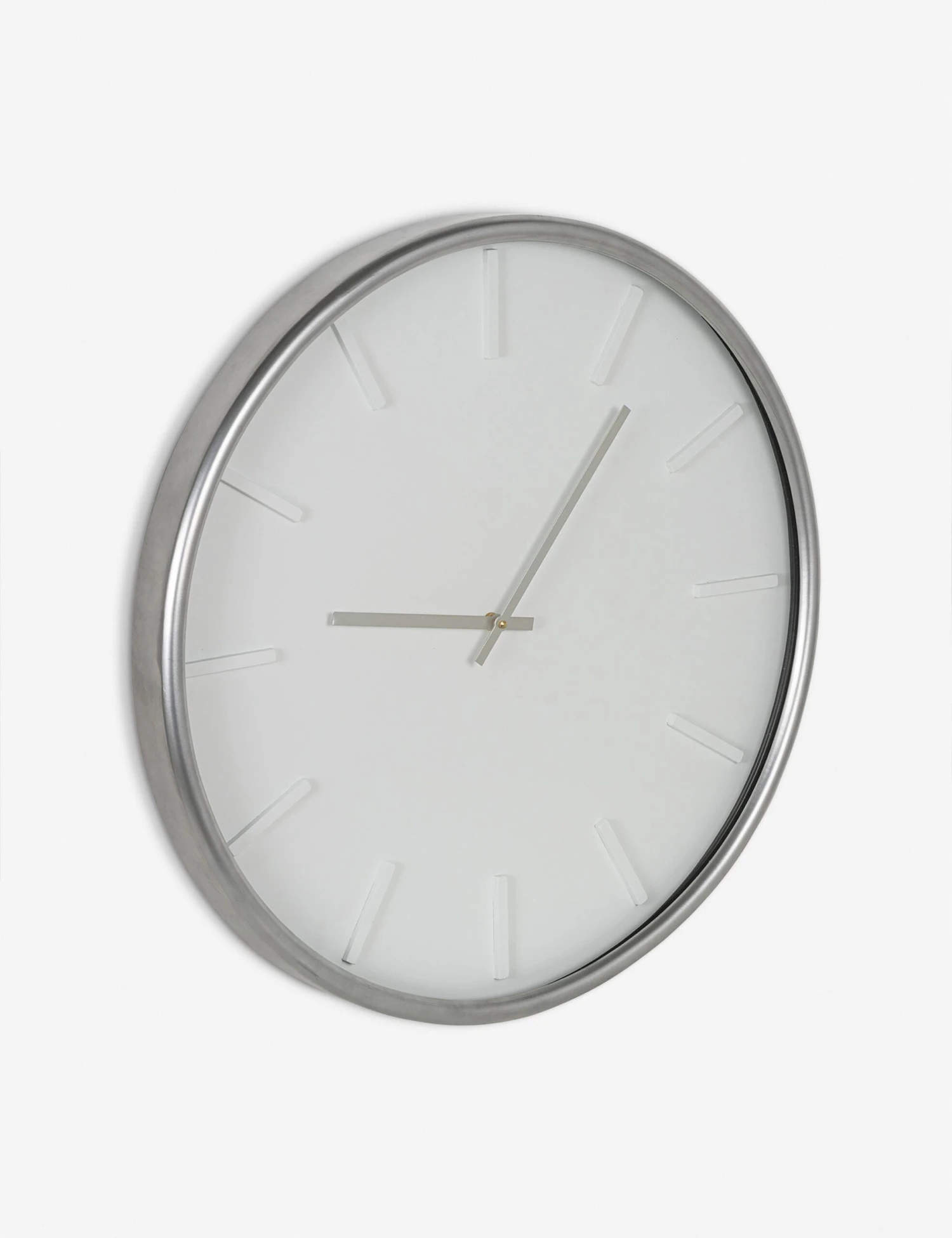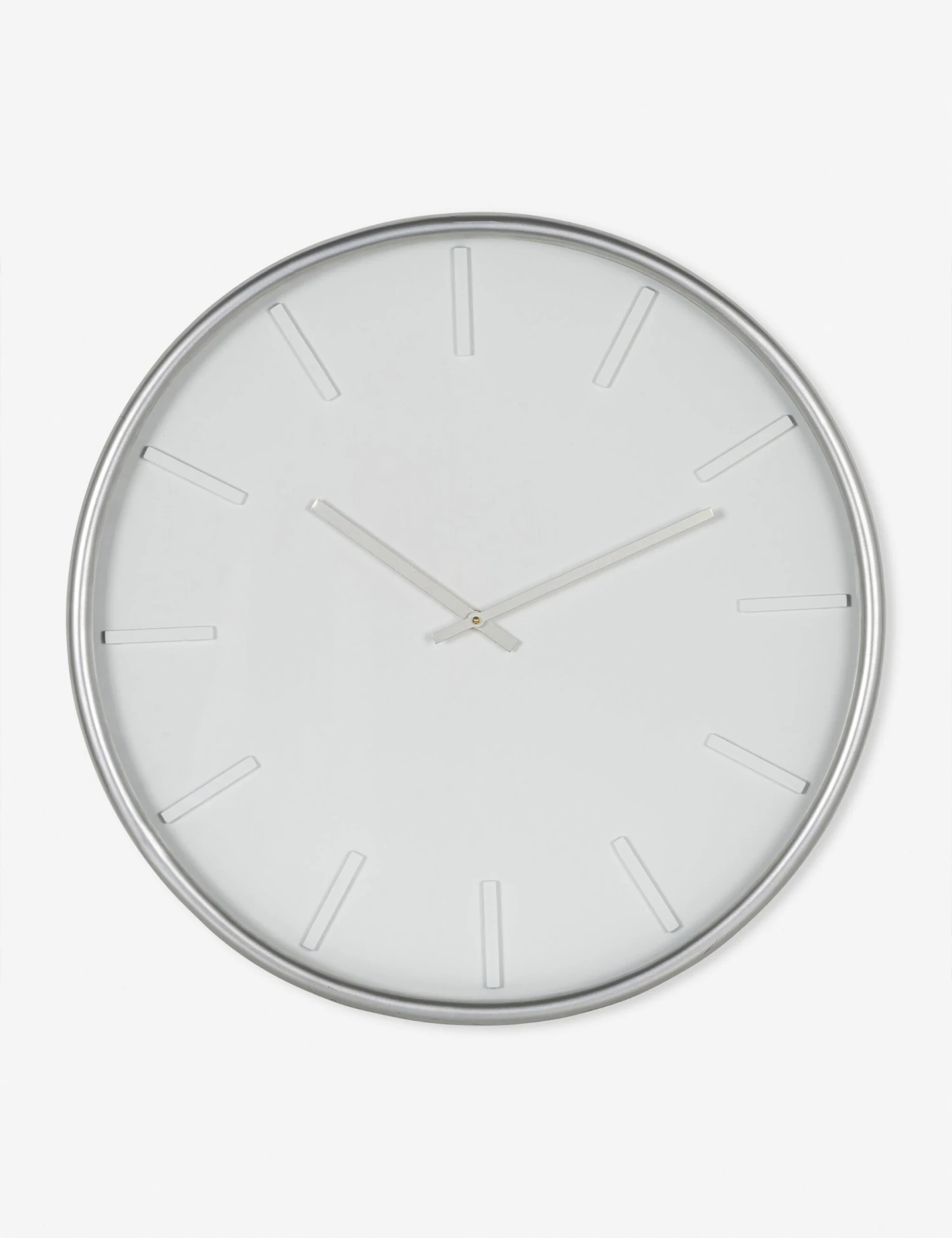 Add some luster to your look with this round metal wall clock. The minimalist dial and slim frame offer up polished elegance with a monochromatic finish that offers the perfect statement accent.