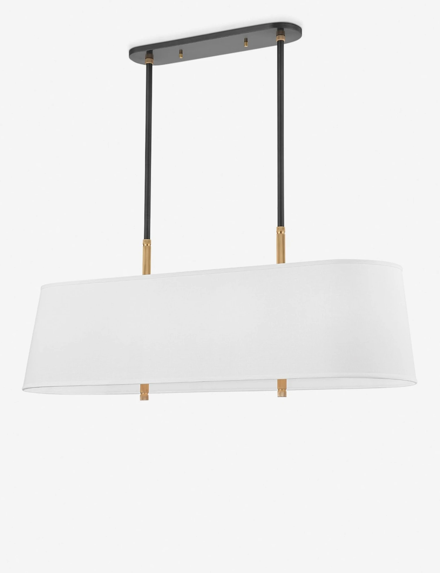 This chandelier offers a ceiling fixture with a clean and simple silhouette filled with textural details like ridged accent pieces and tidy knurling. Finished in antique bronze paired with brass accents and contrasted with a white Belgian linen shade to offer brilliant overhead lighting for a dining room or living space.