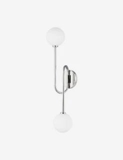 A looped, two-light design makes this Keanu Sconce stand out amongst your wall decor. Paired with frosted glass shades, this sconce light is an excellent accent to style in a bathroom, on a mantel, or bookending a sideboard.
