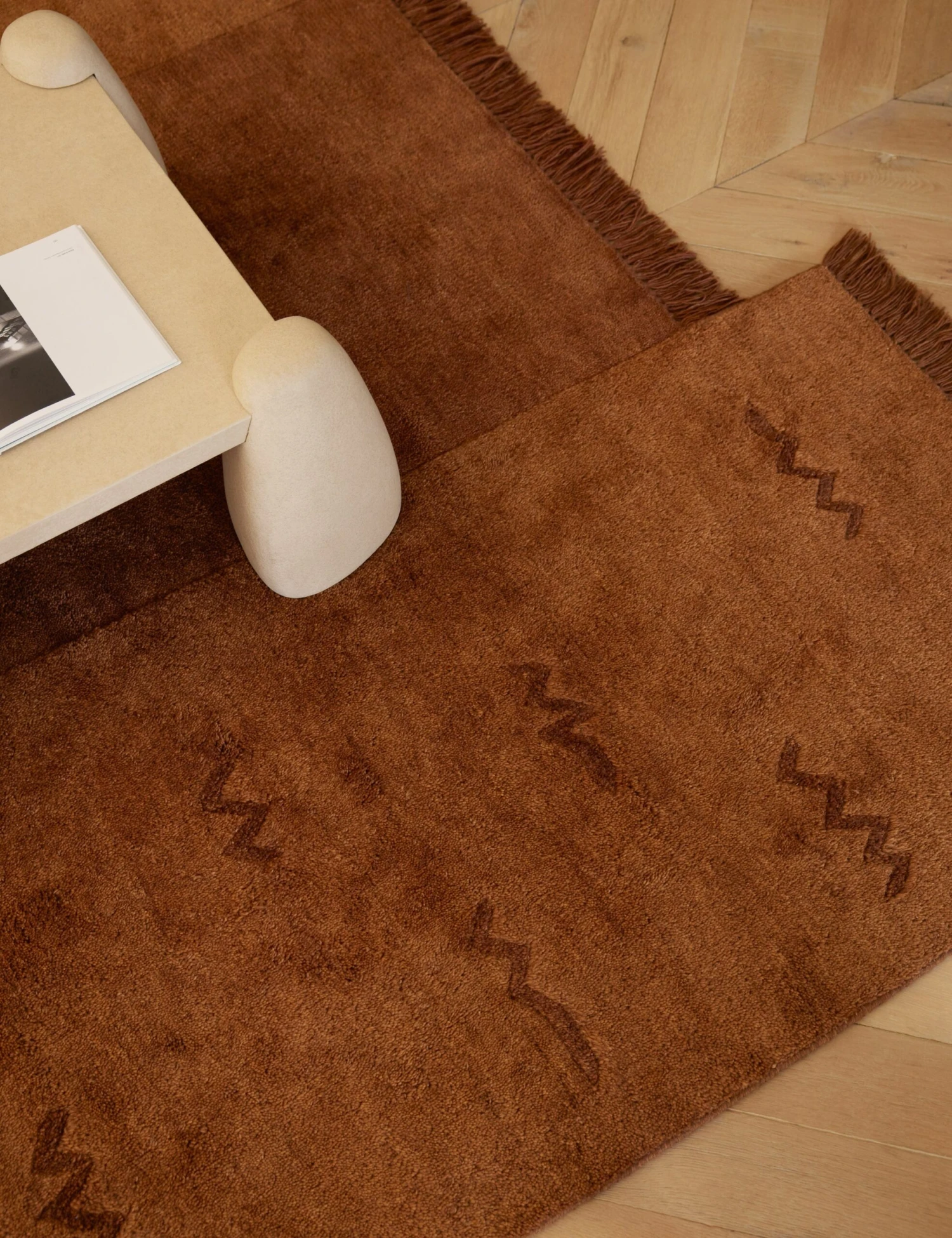 Set a bold foundation with the Koukero rug. The unique design offers a soft woolen texture with a generous fringe in deep earthy tones that will enrich the room. This hand-knotted rug is from our exclusive Sarah Sherman Samuel collaboration and features all the trademarks of her warm, edited style.