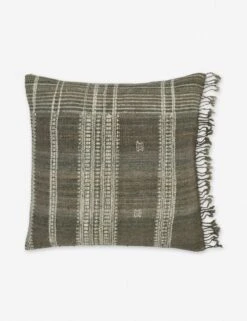 Woven with naturally dyed wool, this pillow combines classic stripes and intricate geometric patterns throughout. Finished with knotted fringe, this handmade decorative pillow takes artisan appeal to the next level in any space.