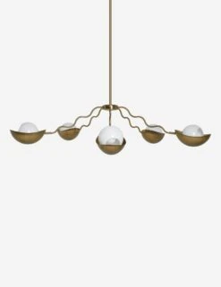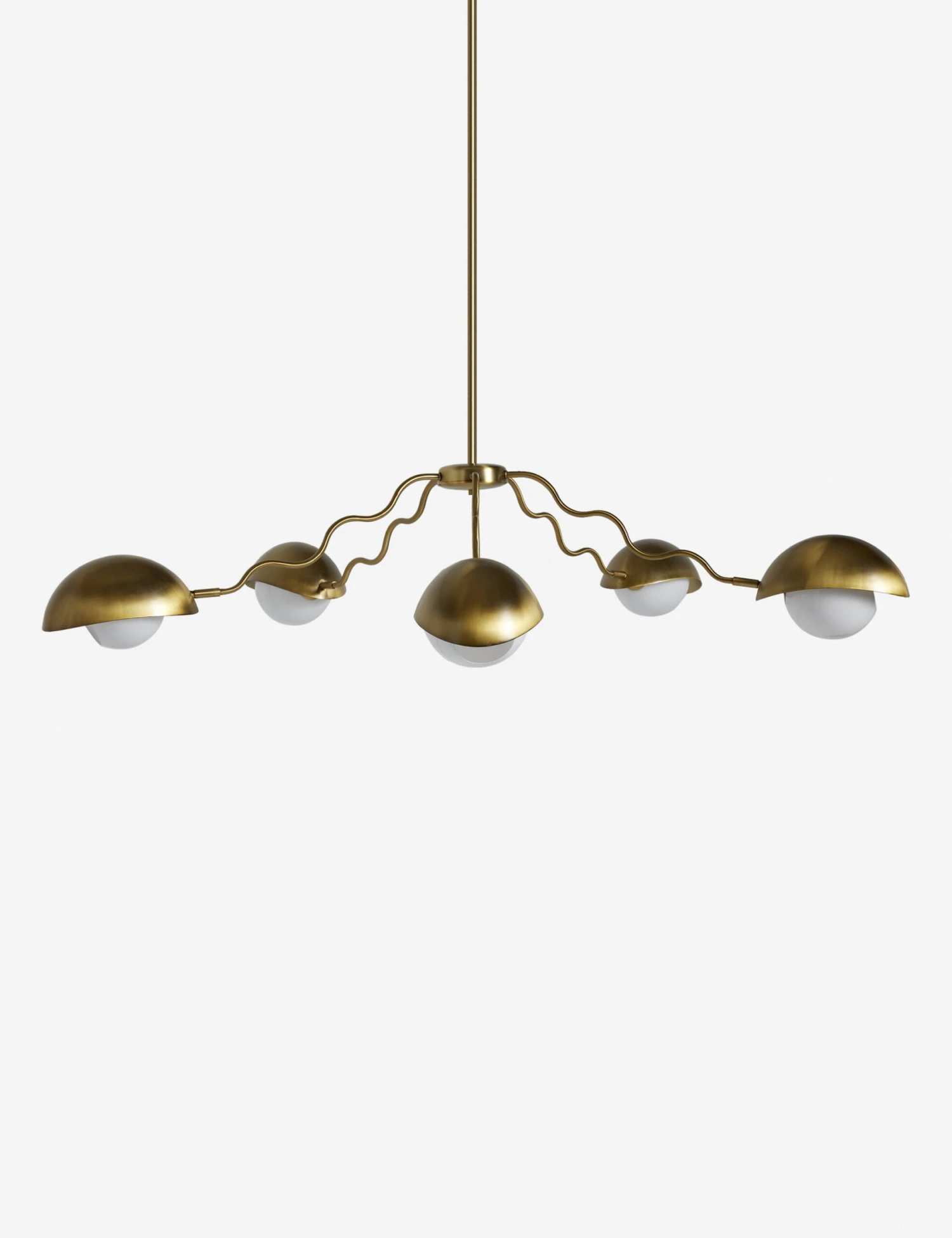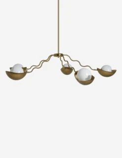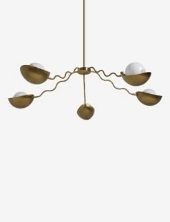 Arftul whimsy meets chic appeal in the Kukka chandelier. The wavy arms hold opal glass orbs with scoop shades—striking a signature look poised for modern decor. This large chandelier is from our exclusive Sarah Sherman Samuel collaboration and features all the trademarks of her warm, edited style.