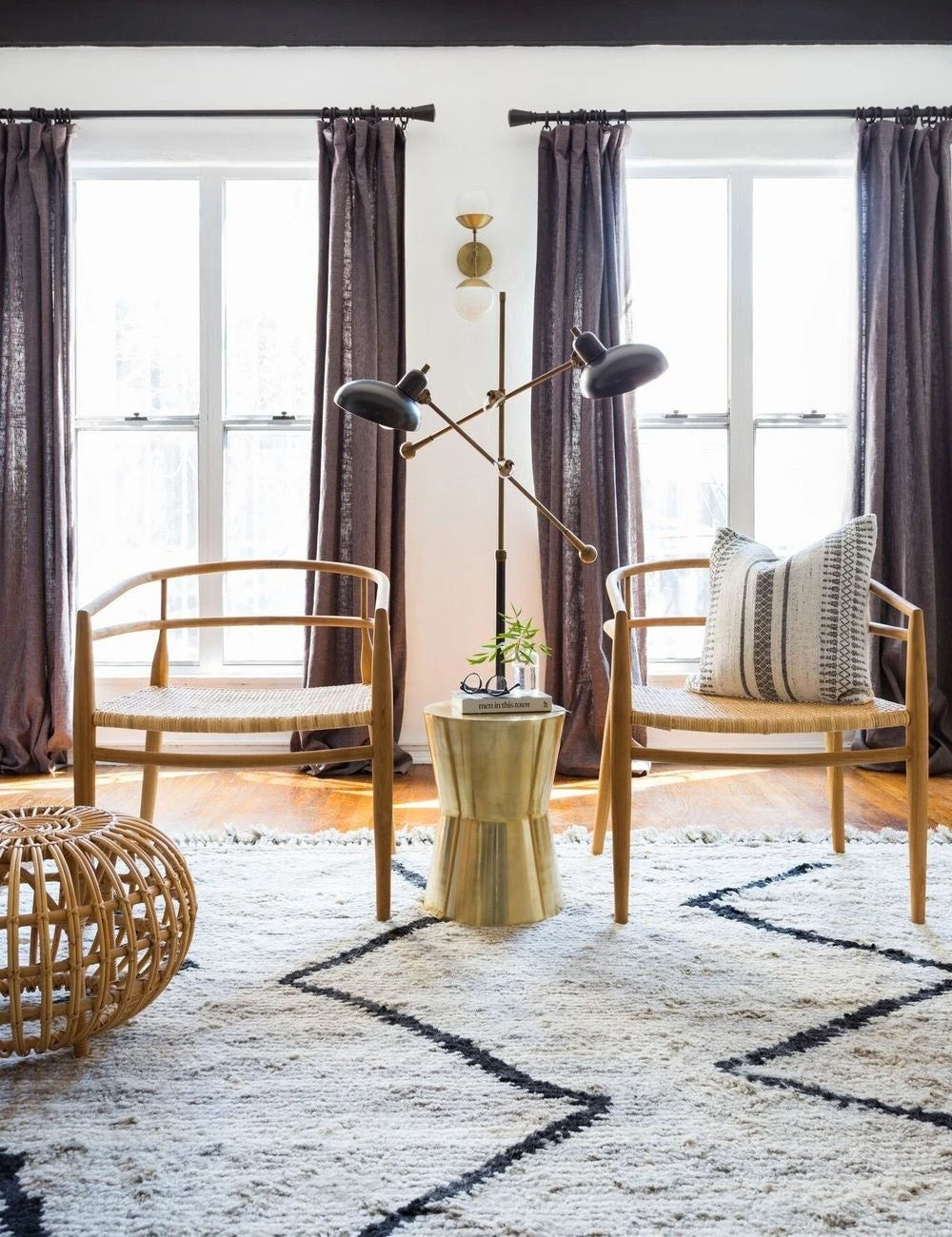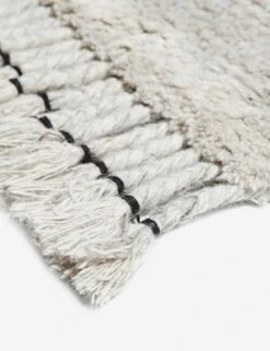 Bring naturally chic style into your home with this Moroccan shag rug, hand-knotted using undyed wool. Inspired by traditional Beni Ourian designs, it features a distinctive geometric motif characteristic of the aesthetic, plus braided fringe for a touch of texture.