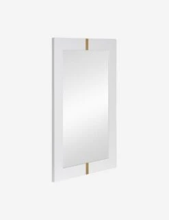 A glossy white frame and gold detailing seamlessly blend modern and art deco styles to create this mirror for your wall. This decorative mirror’s understated style looks great in your bedroom set above your bed or dresser, or place it in your hallway or entry for an easy, stylish accent.