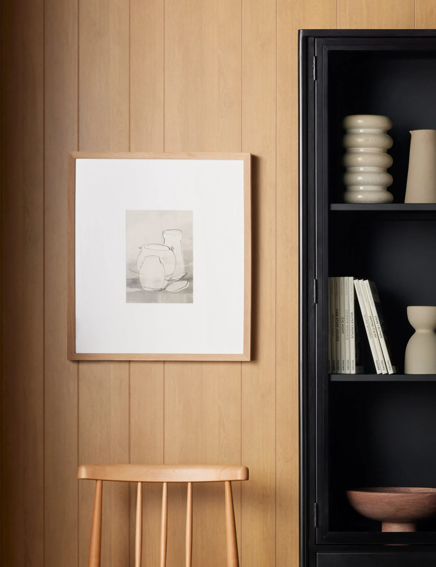 In this abstract wall art piece, artist Jamie Beckwith evokes a playful balance with a loose motif of marks and shapes. Her mixed media style features acrylic and graphite, building a richly layered work for an inspired art wall decor.