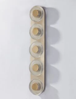 Who said simple can’t be stunning? This slim sconce pairs thick circles of cast glass with metallic accents in a flawless design. When lit, the texture of this beautiful material is on full display, offering a dazzling wall sconce for transitional and modern aesthetics alike.