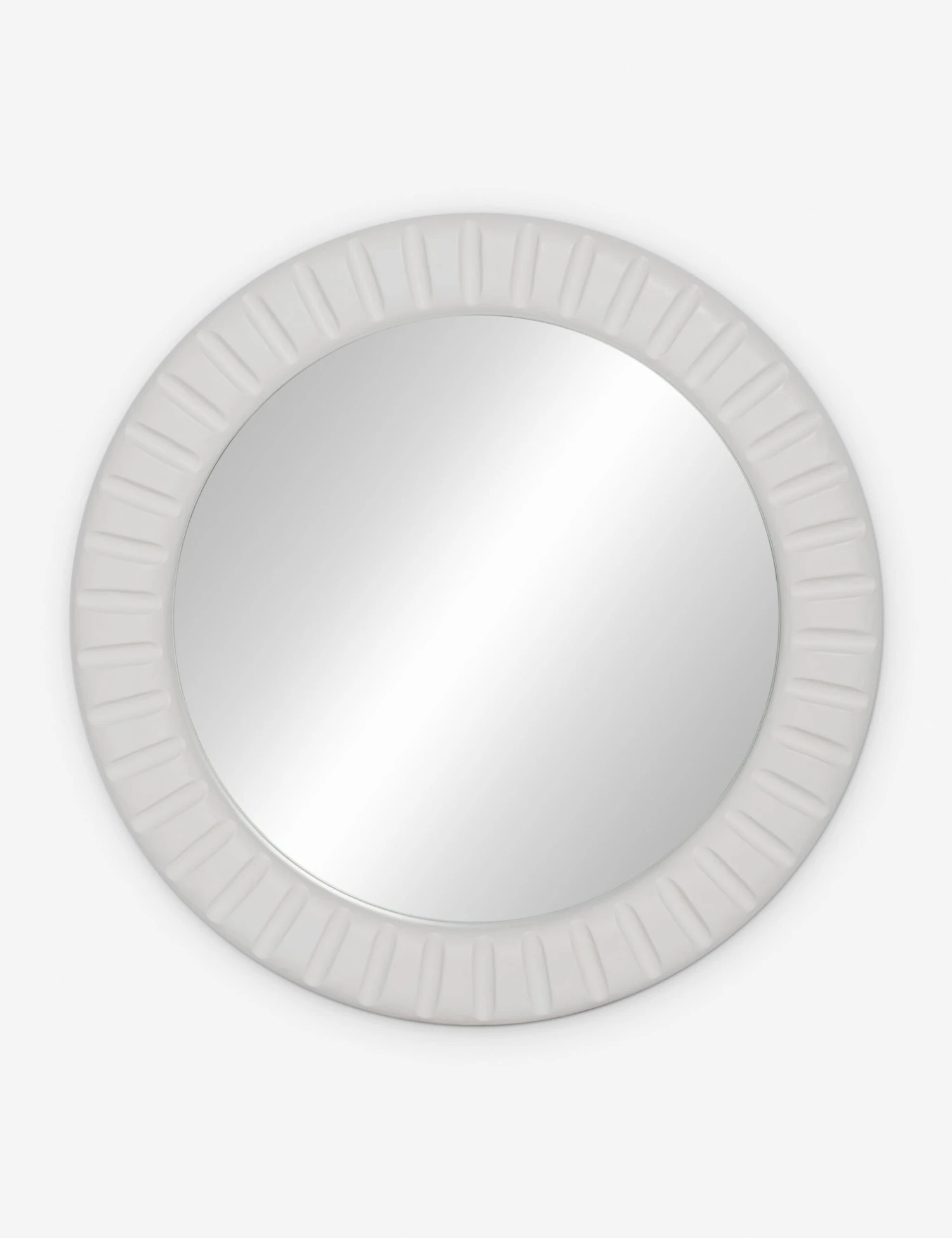 Add a pop of modern texture to your decor with our Tapp mirror. This round mirror is the perfect finish for a chic edit with its white frame bringing a delicate touch to any curation. We love this piece for creating depth and light over a console or entryway table.